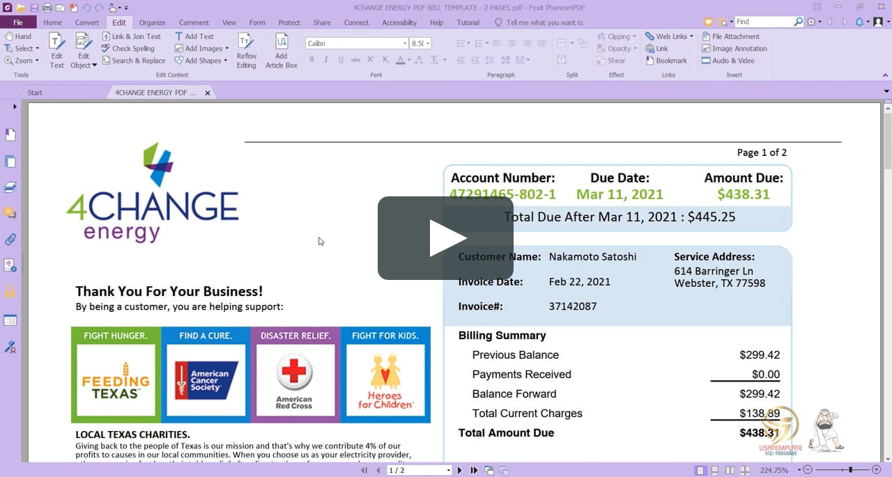 4change Energy Pdf Bill Template 2 Pages Texas Bill Address On Vimeo